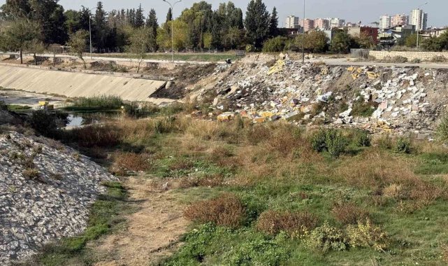 Türkiye'nin en sıcak illerinden Adana'da kuraklık nedeniyle kuruyan Sarıçam Deresi moloz döküm sahasına döndü.