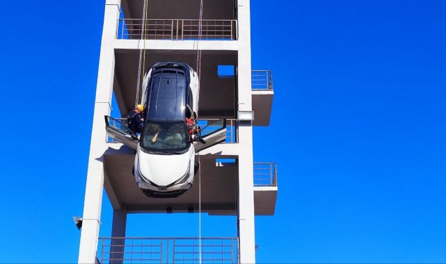 Adana'da AFAD koordinasyonunda 10 kurumdan 175 personelin katılımıyla deprem tatbikatı yapılırken, senaryo gereği uçurumdan sarkmış bir araçta da kurtarma gerçekleştirildi.