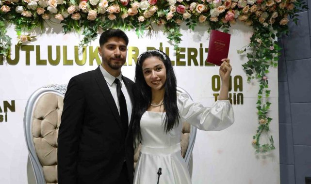 Nikahı kıyılan Ahmet ve Zehra Uğur çifti, bu tarihi özellikle seçtiklerini, çok mutlu olduklarını söyledi.