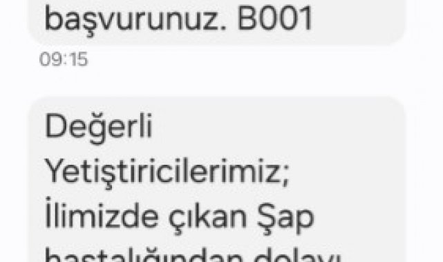 Hayvan yetiştiricilerine gönderilen mesajda, "Değerli yetiştiricilerimiz, ilimizde çıkan şap hastalığından dolayı tüm ilçelerimizdeki hayvan hareketleri durdurulmuştur. Bilgi için İlçe Tarıma başvurunuz" denildi.