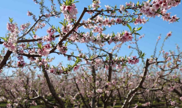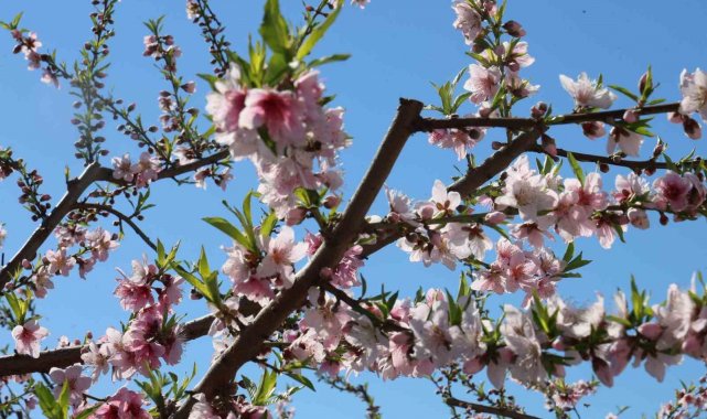 Adana'nın Kozan ilçesinde soğuk havaların ardından hızlı şekilde yükselen sıcaklıklar yalancı baharla birlikte şeftali ağaçlarının çiçek açmasına neden oldu.