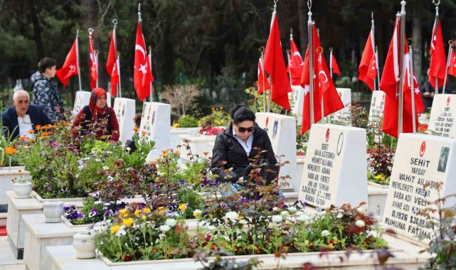 Adana'da şehit aileleri evlatlarının kabirleri başında dua ederek karanfil bıraktı.