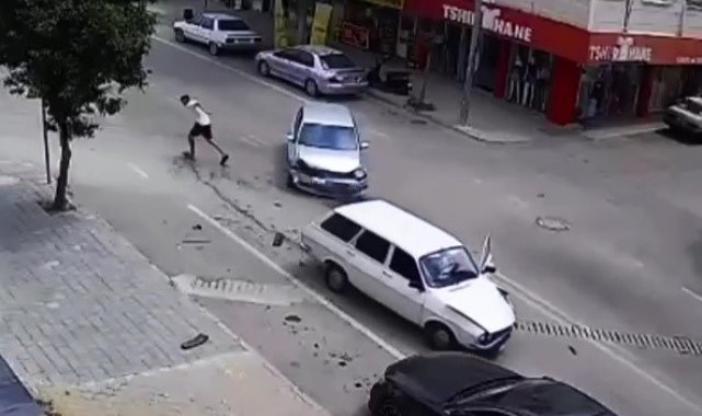 Adana'nın Kozan ilçesinde meydana gelen trafik kazası sırasında aracın kapısı açılan sürücü inip koşarak olay yerinden uzaklaştı. O anlar güvenlik kamerasına saniye saniye yansıdı.