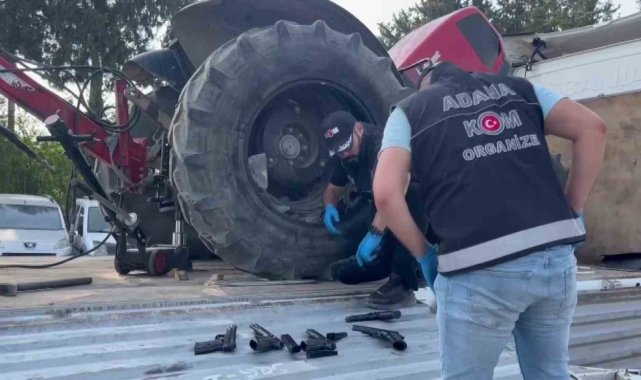 Adana'da polis ekiplerince durdurulan tırda traktör ve tarım ekipmanlarının içine gizlenmiş 420 adet tabanca ele geçirildi.