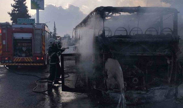 Adana'da toplu taşıma aracı alev alev yandı