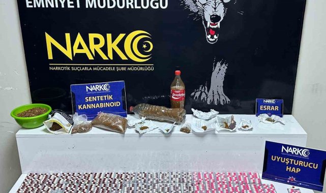 Yapılan aramalarda 705 sentetik ecza, 158,75 gram kokain, 1 kilo 211 gram bonzai, 1 kilo 168 gram amfetamin, 5 gram esrar ve 213 gram bonzai yapımında kullanılan tütün ele geçirildi.