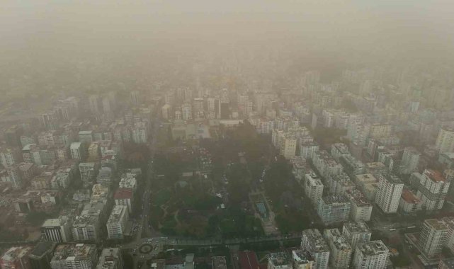 Adana'da toz taşınımı havadan görüntülendi