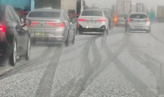 Adana'da etkili olan kuvvetli yağmurun ardından dolu da hayatı olumsuz etkiledi. Erik büyüklüğündeki dolu, özelikle otoyoldaki sürücülere zor anlar yaşadı.