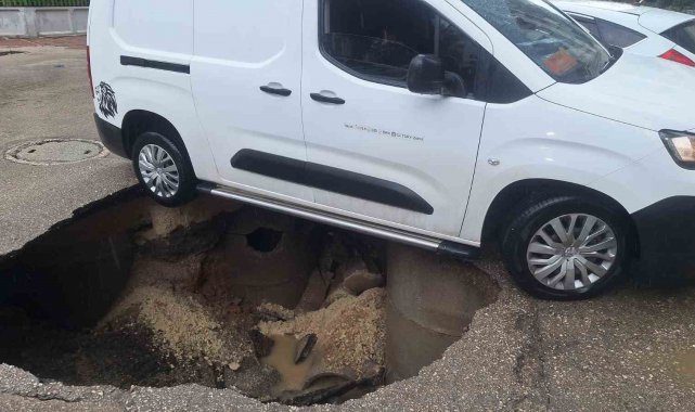 Adana'da yol çöktü, araç düşmekten son anda kurtuldu