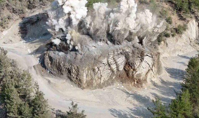 Adana'nın 17 bin nüfuslu Feke ilçesinde keskin virajların ortadan kaldırılması ve yeni yolların dinamit patlatılarak açılması film sahnelerini aratmadı.