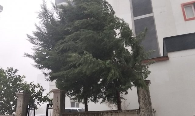 Şiddetli rüzgâr nedeniyle ilçede bazı evlerin balkonlarında saksılar devrildi, su depoları ana yola savruldu, yer yer su birikintileri oluştu.
