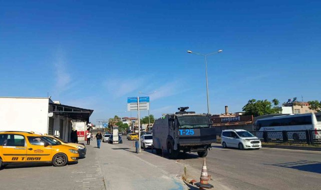 Merkez Seyhan ilçesi Turhan Cemal Beriker Bulvarı'nda bulunan Seyhan Belediyesinin çevresinde çevik kuvvet ekiplerinin yanı sıra bir de toma aracı tedbir aldı.