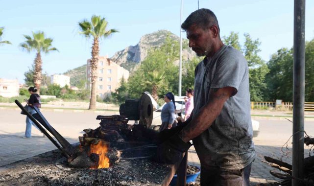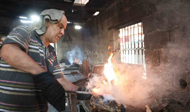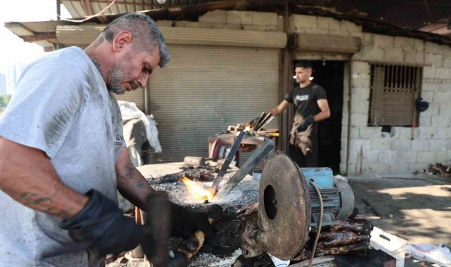 Adana'da aralarında demirci ustalarının da olduğu 14 kişilik ekip, 100 dereceye yaklaşan ocak sıcaklığında alın teri ile 'Kele ve Paça' ütüleme mesaisi yapıyor.