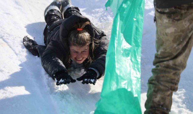 İstanbul'dan festivale katılan Nihal Kahveci ise, "Çocuklar gibi eğleniyoruz. Herkes poşetlerle kayıyor, inanılmaz keyifli. Kızakla bu kadar eğlenemezdik" diye konuştu. Çocuklardan Ecrin Tekin "Çok eğlendik" derken, öğretmen Ömer Çağrı Korkmaz da bidonla kaymanın çok eğlenceli olduğunu söyledi.