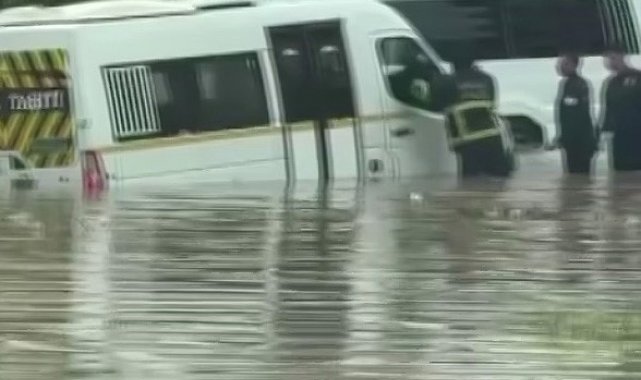 Adana'da sağanak yağış sonrası yollar göle dönerken bir öğrenci servisi su birikintisinde mahsur kaldı. Öğrencileri itfaiye ekipleri kurtardı.