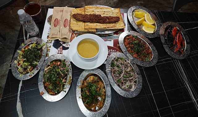 Etin zırhla çekilip tuz ve kırmızı toz biber kullanılarak yoğrulmasının ardından şişlere saplanan Adana kebabı, lokantalarda mangal ateşinde pişirilerek servis ediliyor. Kebabın yanında ücretsiz olarak ikram edilen 8-10 çeşit yöresel meze, salata, ezme ve taze yeşilliklerle zenginleştirilen menüler, iftar saatlerinde hem göze hem de mideye hitap etmeye hazırlanıyor.