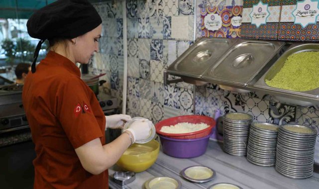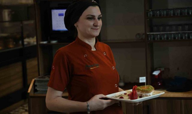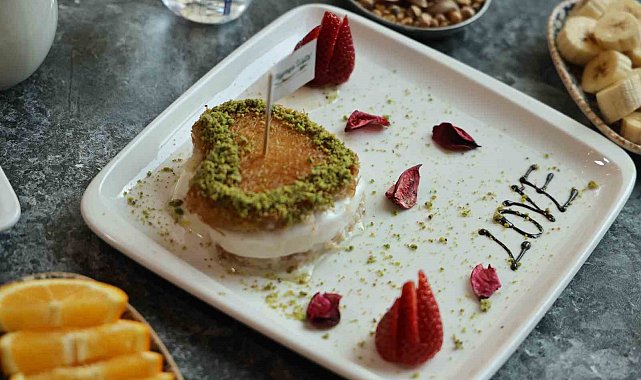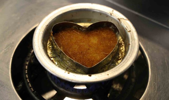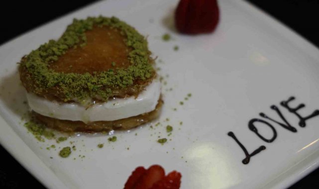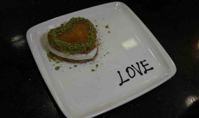 Kentte uzun yıllardır tatlıcılık yapan Zeynep Geyik, Sevgililer Günü'nde birbirlerine hediye sunma arayışa giren çiftlere alternatif sunmak için 14 Şubat'a özel kalp şeklinde künefe hazırladı.