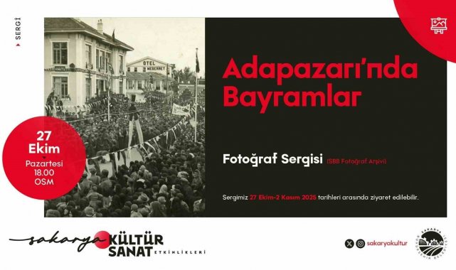 Sakarya Büyükşehir Belediyesi Kültür ve Sosyal İşler Dairesi Başkanlığı tarafından düzenlenen Ekim kültür sanat etkinliklerinde yeni hafta iki farklı etkinlikle başlayacak. 27 Ekim Pazartesi günü Ofis Sanat Merkezi'nde kapılarını açacak "Adapazarı'nda Bayramlar" fotoğraf sergisi, SBB Fotoğraf Arşivi'nden özenle seçilen karelerle geçmişin samimi bayram buluşmalarını, mahalle dayanışmasını ve şehrin kültürel dokusunu nostaljik bir atmosferle yeniden canlandıracak. Serginin açılış saati ise 18.00 olacak.