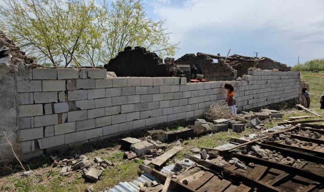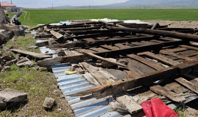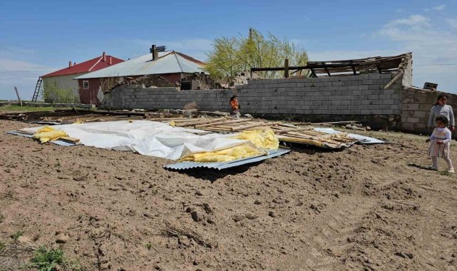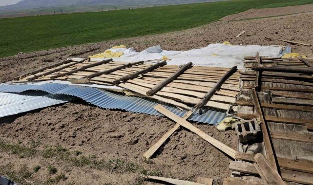 Bitlis'in Adilcevaz ilçesinde etkili olan fırtına nedeniyle bazı ev ve ahırların çatıları uçtu.