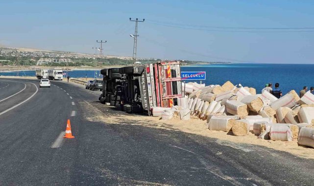 Bitlis'in Adilcevaz ilçesinde saman yüklü tırın devrilmesi sonucu 2 kişi yaralandı.