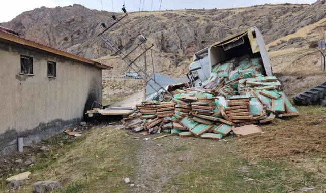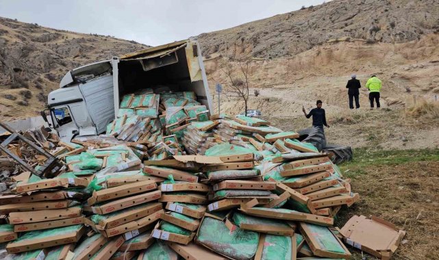 Bitli'in Adilcevaz ilçesinde tavuk eti yüklü tırın devrilmesi sonucu sürücü yararlanırken, koliler etrafa saçıldı.