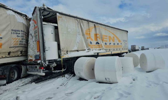 Bitlis'in Adilcevaz ilçesinde seyir halindeki kağıt yüklü tıra, aynı yönde ilerleyen başka bir tırın arkadan çarpması sonucu trafik kazası meydana geldi.