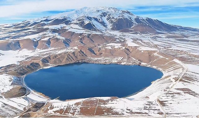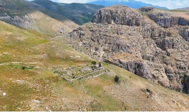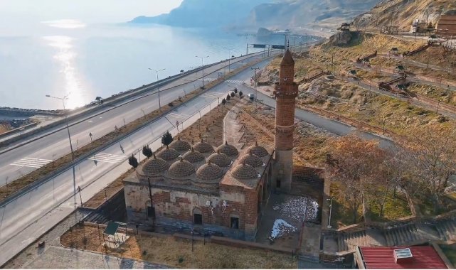 Bitlis'in Adilcevaz ilçesinde yer alan tarihi doğal alanlar havadan görüntülendi.