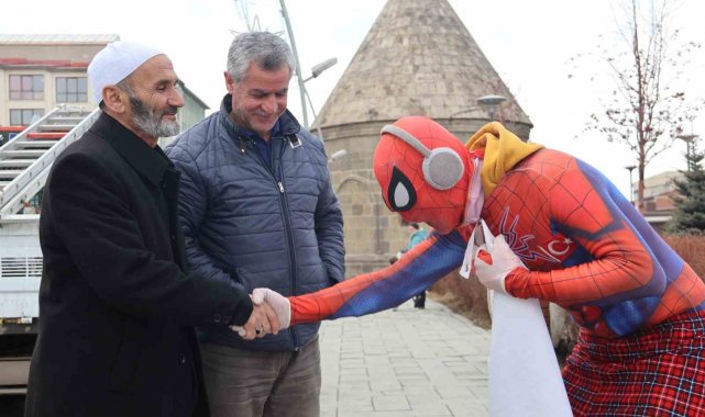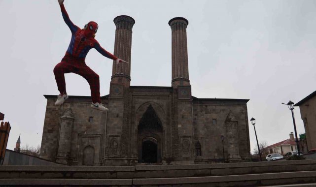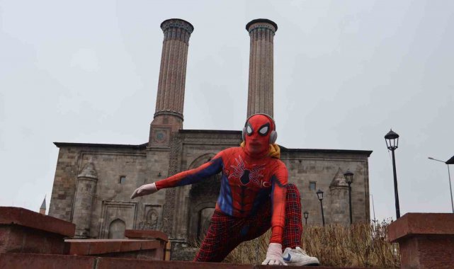 Türkiye'yi gezme hayaliyle 108 gün önce memleketi İzmir'den 'Örümcek Adam' kostümüyle yola çıkan Ayaz Salih Koç'un 63'üncü durağı Erzurum oldu.