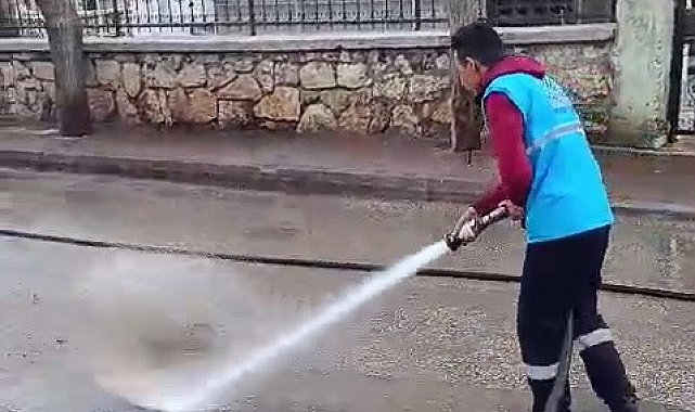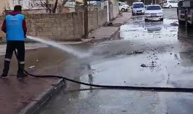 Adıyaman'da, cadde ve sokaklar yıkanarak temiz bir hale getiriliyor.