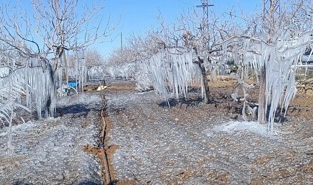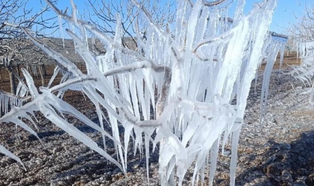 Hava sıcaklıklarının eksi dereceleri gördüğü Adıyaman'da fıstık bahçeleri buz tuttu.