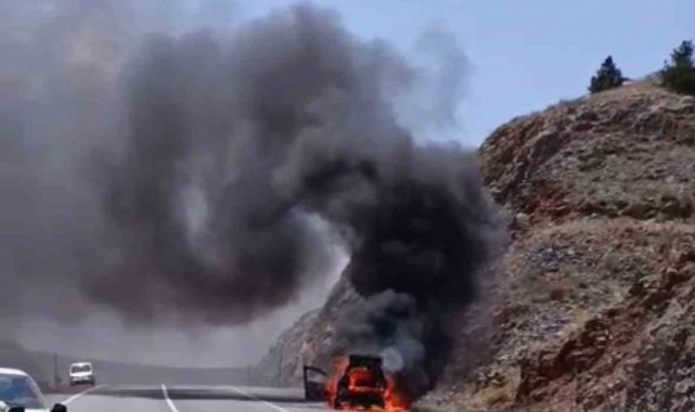 Edinilen bilgilere göre, Adıyaman-Çelikhan karayolunda seyir halinde olan bir otomobil, aniden alev aldı. Motor kısmından yükselen dumanlar kısa sürede tüm aracı sardı. Yangını fark eden sürücü aracı durdurarak kendisini dışarı attı.