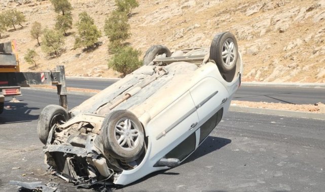 Adıyaman'da, sürücüsünün direksiyon hakimiyetini kaybettiği kazada otomobil takla atarak ters döndü.