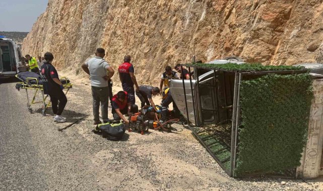 Adıyaman'ın Besni ilçesinde şarampole devrilen kamyonette sıkışan sürücü ağır yaralandı.