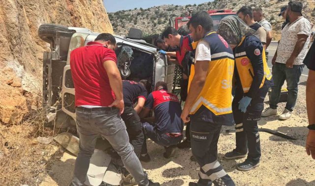 Adıyaman'da şarampole devrilen kamyonetin sürücüsü yaralandı