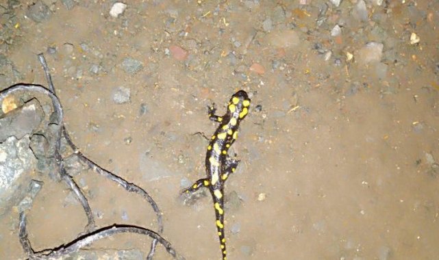 Adıyaman'da türüne az rastlanan ve nesli tükenmekte olduğu için koruma altına alınan sarı benekli semender görüldü.