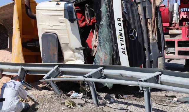 Adıyaman'da viraja girerken sürücüsünün kontrolünden çıkan tır devrildi. Meydana gelen kazada tır sürücüsü hayatını kaybetti.
