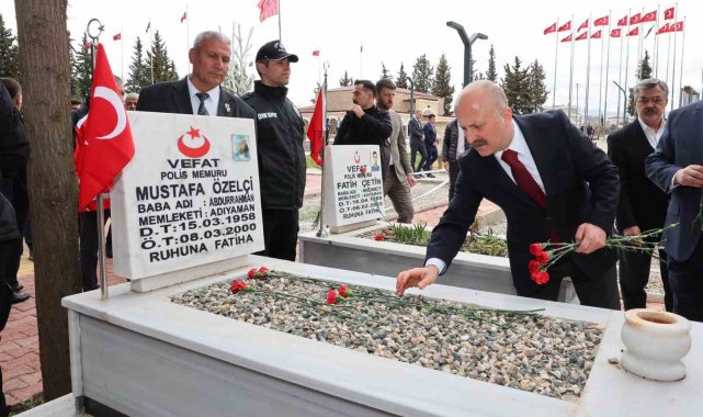 Adıyaman Valisi Osman Varol, AK Parti Adıyaman İl Başkanı Ekrem Çadır, kurum müdürleri, STK temsilcileri, emniyet mensupları, jandarma personeli, şehit aileleri ve çok sayıda kişi, Ramazan Bayramı öncesi şehitlik ziyaretinde bulundu. Ziyarette protokol üyeleri tarafından kabirlere karanfiller bırakıldı, müftülük görevlileri tarafından Kur'an-ı Kerim okunarak dualar edildi.
