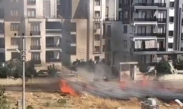 Adıyaman'da, otluk alanda meydana gelen yangın, depremzedelerin çadır v...