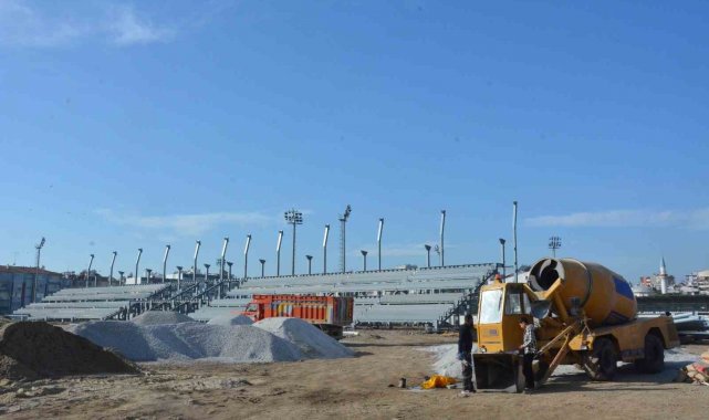 Profesyonel lig standartlarında, 6 bin seyirci kapasiteli olarak projelendirilen yeni stadın yıl sonuna kadar tamamlanması için sahada yoğun bir mesai yürütülüyor. Şantiyede 5 iş makinesi, 6 kamyon ve 35 kişilik ekip gece gündüz demeden çalışırken, çelik tribünlerin büyük bölümü tamamlandı ve sahada ince işçilik aşamasına geçildi. Yetkililer, önümüzdeki hafta FIFA standartlarının da üzerinde bir kaliteye sahip olan özel çimin serimine başlanacağını belirtti. Stadyumun doğal çim sahası, ileri altyapı sistemleri, tartan pisti, saha aydınlatmaları, su deposu ve yenilenmiş deplasman alanlarıyla modern bir spor kompleksi haline geleceği ifade edildi. Doğu ve karşı tribünlerde küçük dokunuşların kaldığı, batı tribününde ise enerji odaları, teknik odalar, kazan dairesi, seyirci tuvaletleri ve antrenman salonlarının tamamlanmak üzere olduğu kaydedildi.