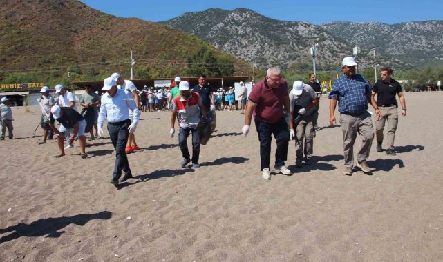 Adrasan'da yaz tatilinin ardından boş kalan plajı temizlediler