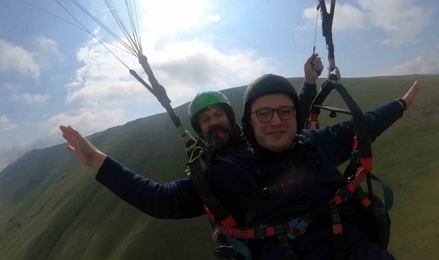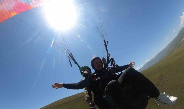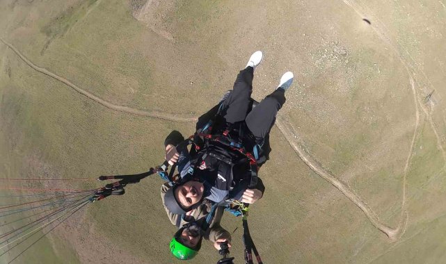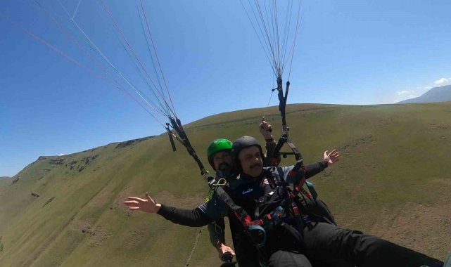 Adrenalin tutkunu Erzurum Valisi Mustafa Çiftçi, bu defa yamaç paraşütüyle zirveden uçtu