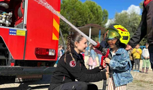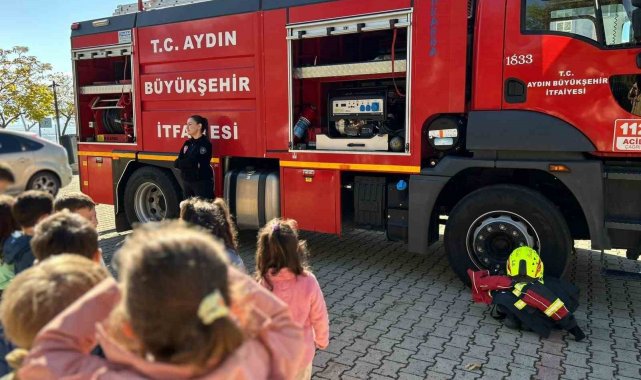 Aydın Adnan Menderes Üniversitesi (ADÜ) Anaokulu öğrencileri, Aydın Büyükşehir Belediyesi İtfaiye Daire Başkanlığı ekiplerinin katılımıyla düzenlenen uygulamalı eğitim etkinliğinde yangın güvenliği konusunda bilgilendirildi.