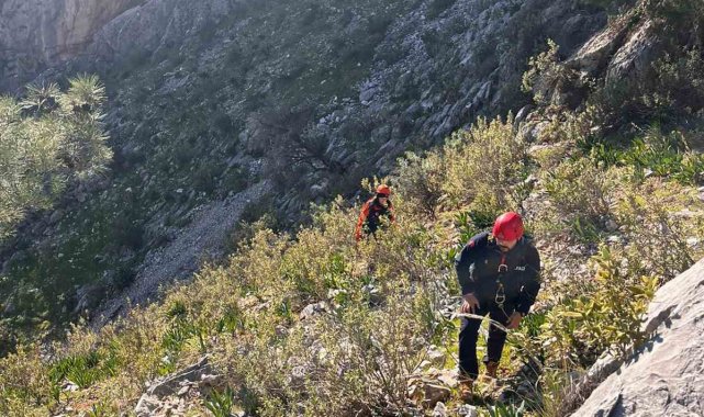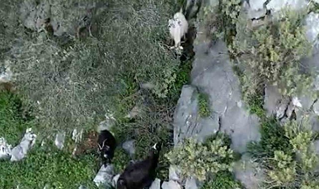 Muğla'nın Ula ilçesi Kıyra Mahallesinde sarp kayalıklarda mahsur akalan iki keçi için AFAD ekipleri kurtarma operasyonuna çıktı.
