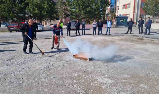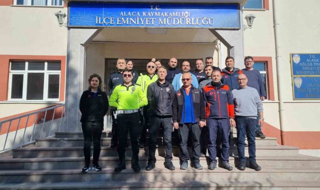 Çorum Valiliği İl Afet ve Acil Durum Müdürlüğü (AFAD) ekipleri tarafından Alaca İlçe Emniyet Müdürlüğü personellerine yangın ve farkındalık eğitimleri verildi. Teorik eğitimin ardından düzenlenen tatbikatta personeller, yangın esnasında tahliyeyi ve yangın tüpüyle müdahaleyi uygulamalı olarak öğrendi.