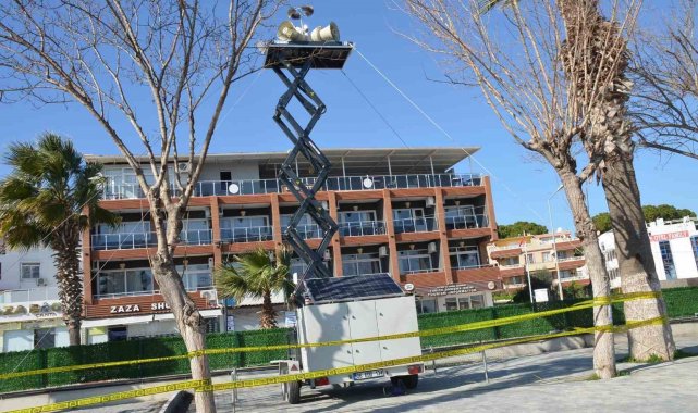 Santorini Adası başta olmak üzere Ege Denizi'ndeki depremler sonrasında AFAD İl Müdürlüğü ekipleri, Aydın'ın Didim ilçesindeki Altınkum Sahili'ne acil durumda duyuru yapılacak anons sistemi kurdu.