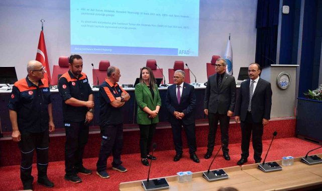 Kayseri İl Afet ve Acil Durum Müdürlüğü tarafından doğal afetlere karşı alınması gereken tedbirler ile enkaz altında arama ve kurtarma konuları hakkında sunum yapıldı.