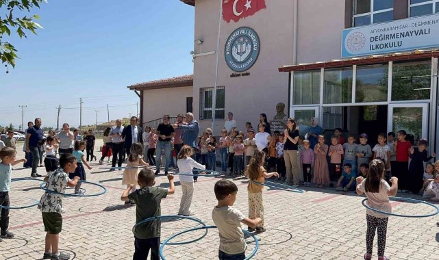 Aile ve Oyun Haftası çerçevesinde Değirmenayvalı İlkokulu'nu ziyaret eden İl Milli Eğitim Müdürü Miraç Sünnetci, Şube Müdürleri Mustafa Günay ve Hayati Duman ile birlikte öğrenci ve öğretmenlerle bir araya geldi.