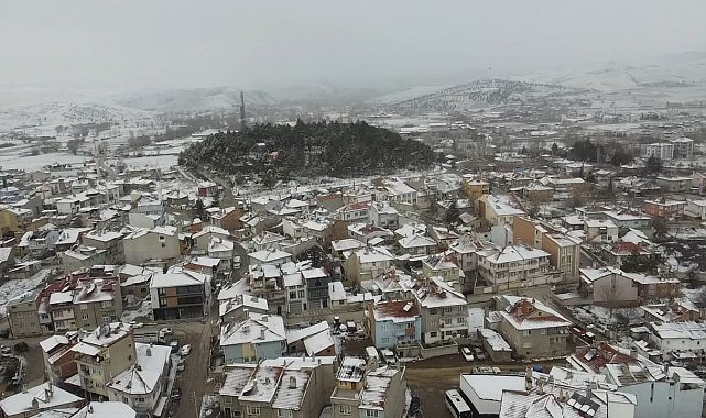 Şuhut ilçesinde yağan kar yağışı sonrası ise ilçe dron ile havadan görüntülendi.