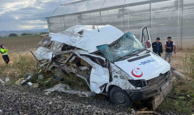 Afyonkarahisar'da kontrolsüz hemzemin geçitte trenin çarptığı minibüsün sürücüsü yaralandı.