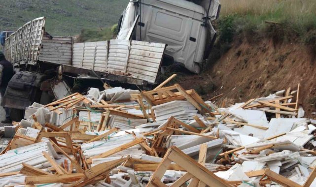 Afyonkarahisar'da mermer yüklü tırın derilmesi sonucu 2 kişi yaralanırken, kazada tırın dorsesindeki yaklaşık 250 bin TL'lik işlenmiş mermer ise çevreye dağılıp, kullanılamaz hale geldi.